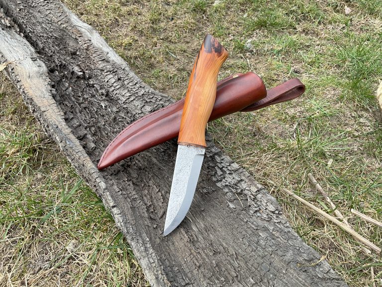 Alt stålet til vores dolke og jagtknive er Böhler 720 – et carbon stål af høj kvalitet fra Böhler, Østrig. Knivene er i monostål og er hærdet og anløbet til 61-62 HRC. Der måles hårdhed på alle vores knive. Knivene er skarpslebne i 24 grader. Skæfterne er alle stabiliseret med epoxy med mindre andet er oplyst, og alle dolkene leveres med håndlavede læderskeder.